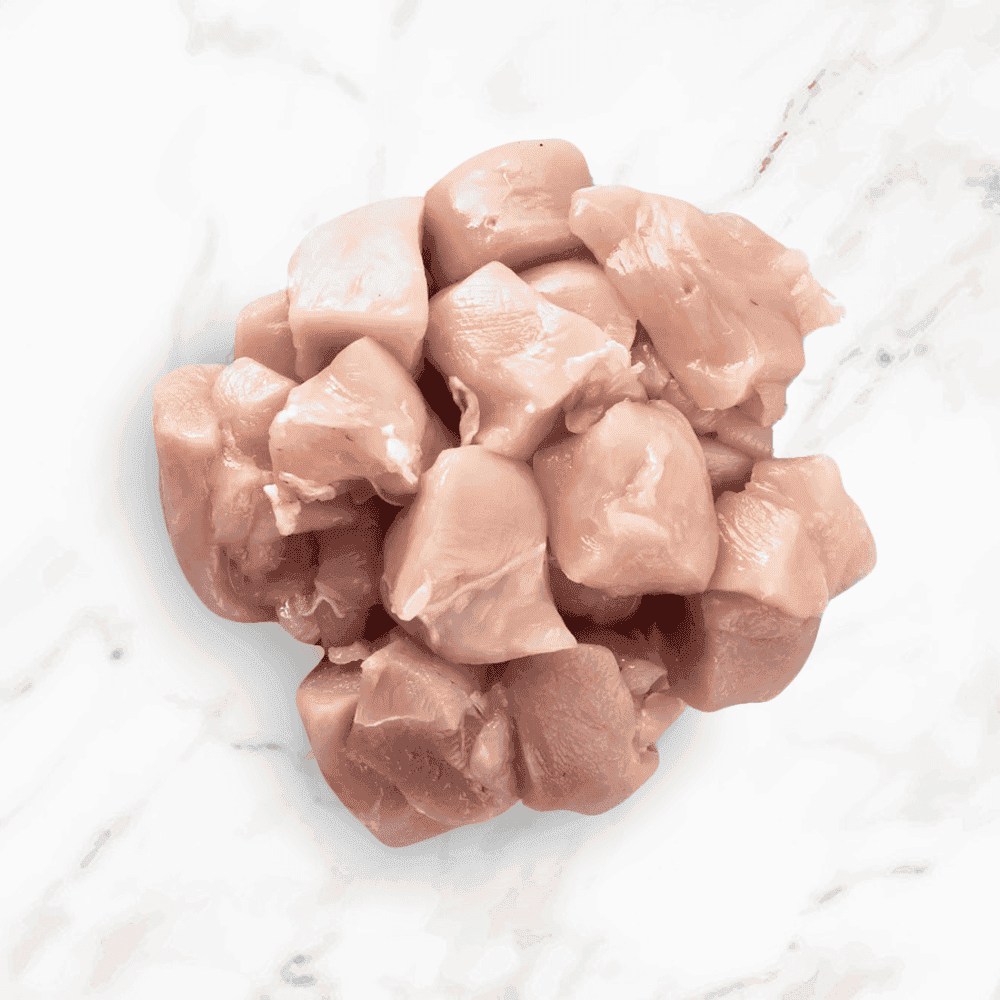 JUST HALAL BONELESS SKINLESS CHICKEN BREAST CHUNKS 20LB. (Individual package weighs 1.2lb – 1.7lb each)